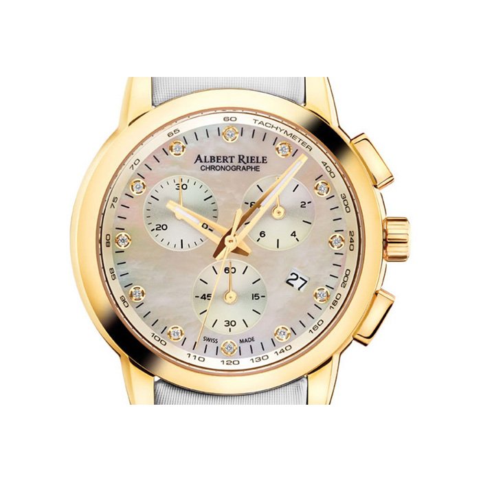 ساعت مچی عقربهای زنانهی «آلبرت ریله» (Albert Riele) مدل «LQ03-SY99D-TW-K1513» از ساعتهای بسیار شیک و لوکس این برند سوییسی است. این ساعت کلاسیک، ویژگیهای جذاب و البته کارآمدی دارد که زیبایی ساعت را دوچندان کرده است. یکی از این ویژگیها کرنوگراف یا زمانسنج است که با دو کلید سمت راست کنترل میشود و به موجب آن دو شمارشگر روی صفحه تعبیه شده است. ویژگی دیگر این ساعت بهره بردن از قابلیت سرعت سنج (تاکي متر) است. تاریخشمار هم دیگر قابلیتی است که در کنار زیبایی، کارایی بسیاری دارد و شمارهی روزِ ماه را روی صفحهی صدفی ساعت و در موقعیت عدد چهار به تصویر میکشد.