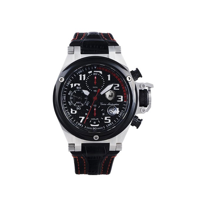 ساعت مچی عقربهای «لامبورگینی» مدل «Lamborghini TL-G-7750» از مدلهای کلاسیکاسپرت تولیدمحدود یا Limited Edition این برند ایتالیایی است. این مدل که در سری «Gran Premio» دستهبندی میشود، دارای قابلیتهای اسپرت متعددی است که هم از نظر کارایی و هم از نظر ظاهری به جذابیت ساعت افزوده است. ساعت TL-G-7750 از موتوری اتوماتیک و سوییسی برخوردار است که به موتور «Valjoux 7750» معروف است. این مدل اتوماتیک و حرکتی قابلیتهایی را هم در اختیار کاربر قرار میدهد که با توجه به مکانیزم عملکرد اهمیت و جذابیتی دوچندان دارد. این قابلیتها کرنوگراف یا زمانسنج و یک تاریخشمار است. کرنوگراف با صفحات فرعی یا شمارشگرهایی جذاب همراه بوده و تاریخشمار در موقعیت ساعت چهار، شمارهی روز ماه را در قابی دایرهای نمایش میدهد. این ساعت لوکس از برند لامبورگینی قابی با عرض 53.5 میلیمتر دارد که با در نظر گرفتن تاج کوک ابعادی متوسط و قابلقبول به نظر میرسد. در حاشیهی صفحه شاهد ارقامی هستیم که قابلیت تاکیمتر یا زمانسنج را هم به همراه دارند. طراحی فوقالعاده لوکس و زیبای بند چرمی با دوخت قرمز و قفل فلزی سگکی قلابدار هم ترکیب کاملا متناسبی برای این ساعت لوکس محسوب میشود. برای قلاب یا قسمت اصلی قفل، شاهد طراحی لوگوی اصلی لامبورگینی یا همان گاو معروف در طرحی سهوجهی هستیم که به زیبایی این بند و در کل ساعت افزوده است. شیشهی ضدخش ساعت از جنس یاقوت یا سافایر ساخته شده و بدنهی آن تا فشار 100متر یا 10بار در برابر آب مقاومت دارد که نگرانی مربوط به نفوذ آب در تقریبا تمام موقعیتهای معمول روزمره نظیر شستوشوی دست را از بین میبرد. در مجموع این مدل را میتوان یکی از شیکترین ساعتهای لوکس برشمرد که در کنار تمام مشخصات بارز کیفی و فنی، تولیدمحدود بودن آن هم به ارزش و جذابیت آن به عنوان ساعتی خاص و لاکچری افزوده است.